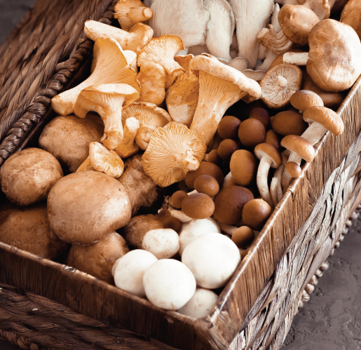 Nấm là thực phẩm ít calo nhưng giàu dinh dưỡng, chứa nhiều vitamin nhóm B (như niacin và riboflavin), cùng với selen, đồng và chất chống oxy hoá. Một số loại nấm như nấm hương, nấm bào ngư và nấm đùi gà còn hỗ trợ tăng cường miễn dịch, cân bằng đường huyết và giảm viêm. Nấm cũng là nguồn cung cấp beta-glucan tự nhiên giúp điều hòa cholesterol. Tại Chay Garden, nấm được lựa chọn theo mùa, không chỉ giữ vị tươi và độ giòn đặc trưng, mà còn đảm bảo tối ưu dinh dưỡng tại thời điểm thu hoạch. Mỗi loại nấm mang một hương sắc riêng, tạo chiều sâu cho món ăn.